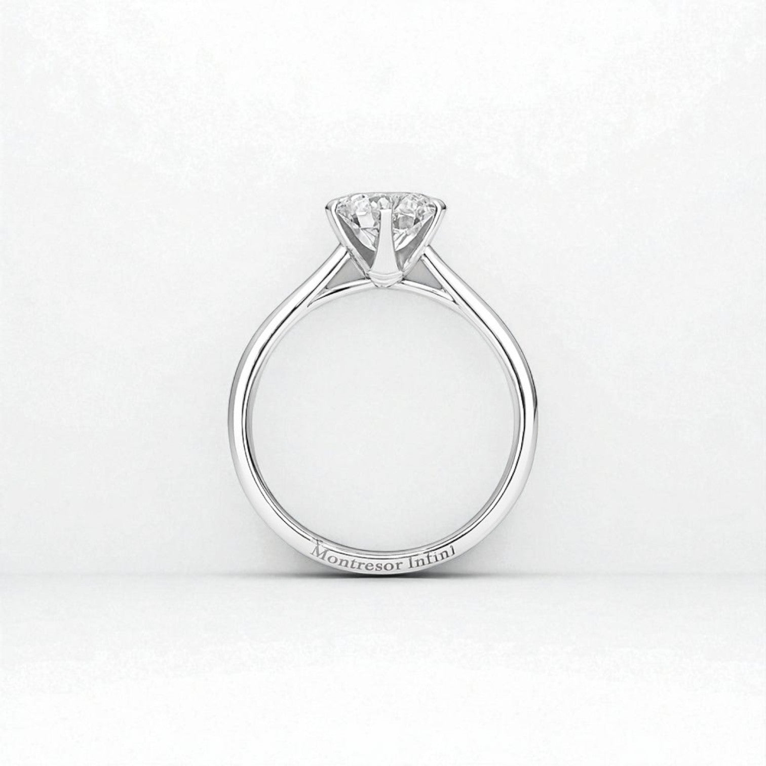 A refined engagement ring designed with understated elegance. Its slender band enhances the brilliance of the center stone, making it a timeless choice for proposals, engagements, or as a lasting symbol of love.