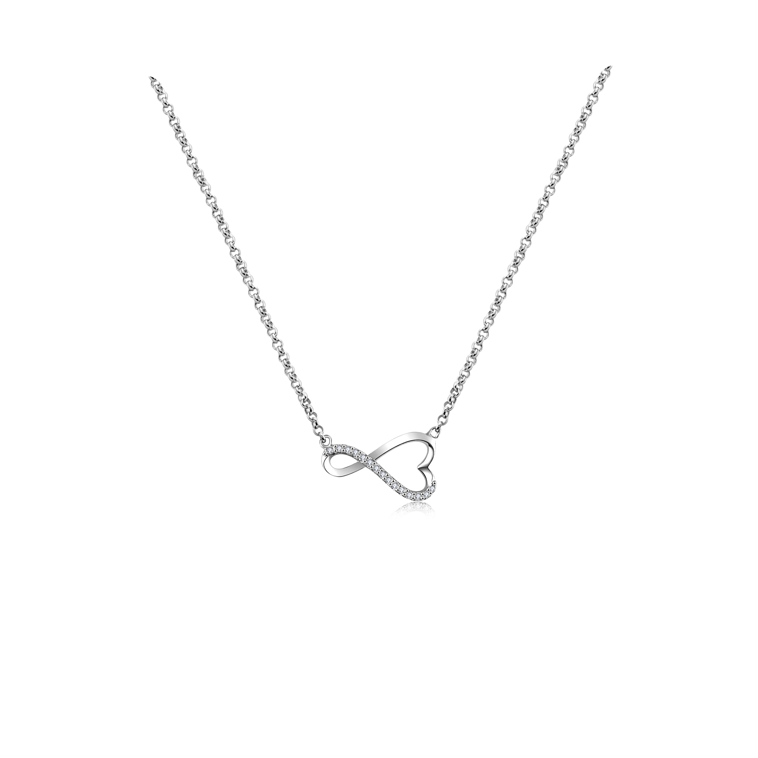 Endless love, turned into a token, the Infini Love necklace is made of 925 silver, coupled with sparkling zircons, the chain is 16 inches long. The weight is 2.3g.